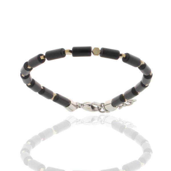 Armband, Edelstahl, Onyx, IP Gold, 19 + 3 cm