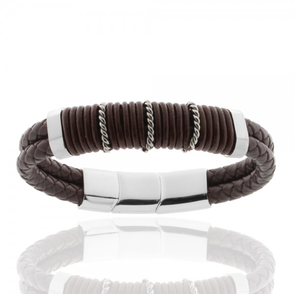 Armband, Edelstahl, Leder geflochten, braun, verschiedene Längen