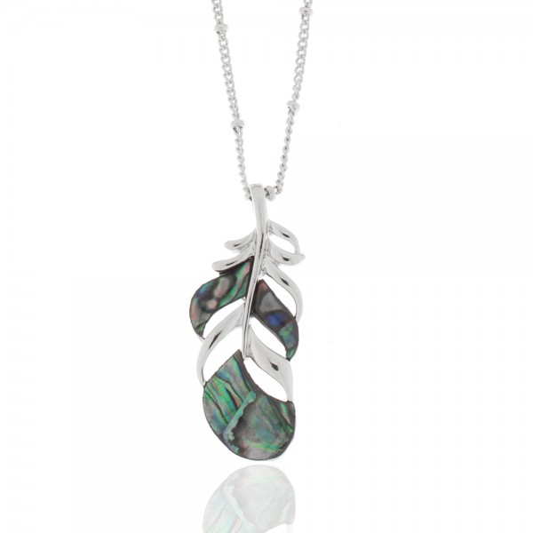 Collier, imit. Rhodium, Abalone, Kristallsteine weiß, Feder, nickel-cadmium-bleifrei