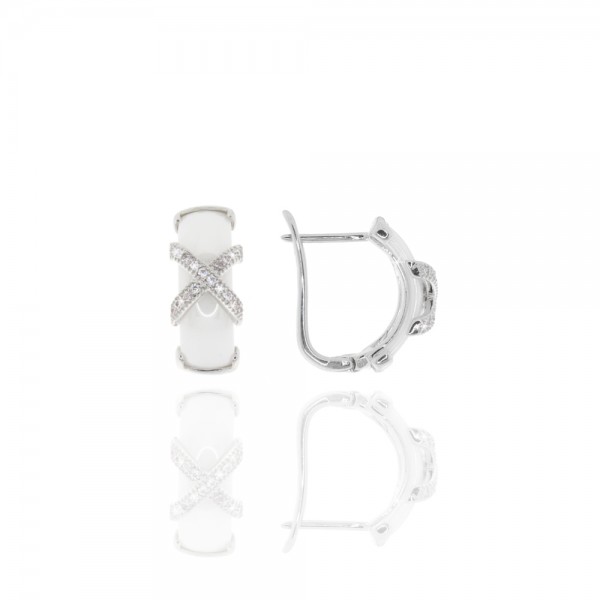 Creole Modeschmuck, Keramik weiß, Steine kristall, oval, 17 mm Durchmesser