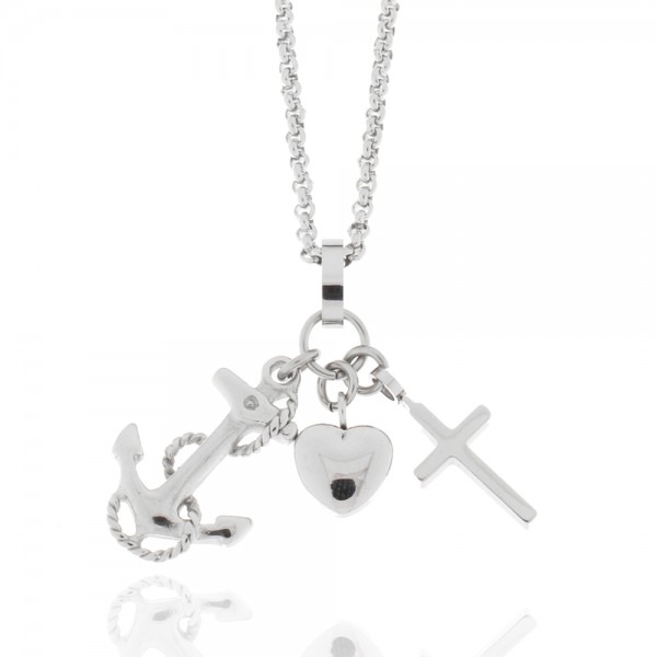 Collier, Edelstahl, Seemannsgrab, Kreuz, Herz, Anker