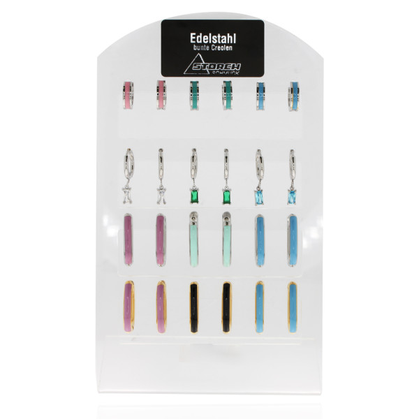 12er Set Creolen Edelstahl, Zirkonia, Emaille, bunt, verschiedene Ausführungen