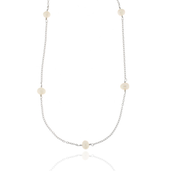 Collier, Edelstahl, poliert, Süßwasserzuchtperlen, 45 + 5cm