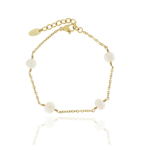 Armband, Edelstahl, IP vergoldet, poliert, Süßwasserzuchtperlen, 18 + 3cm