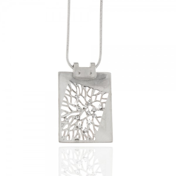Collier, imit. Rhodium, poliert, gebürstet, Kristallsteine, rechteckig, nickel-cadmium-bleifrei