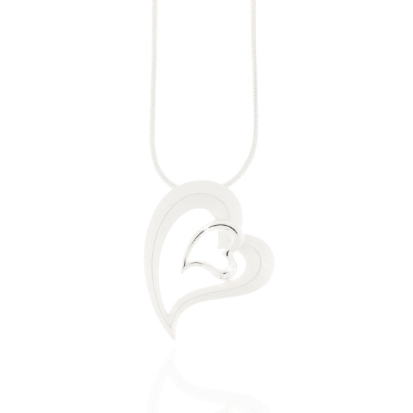 Collier imit. Rhodium, Herzen, matt/glänzend silber, 42 + 8cm, nickel-cadmium-bleifrei, antiallergisch
