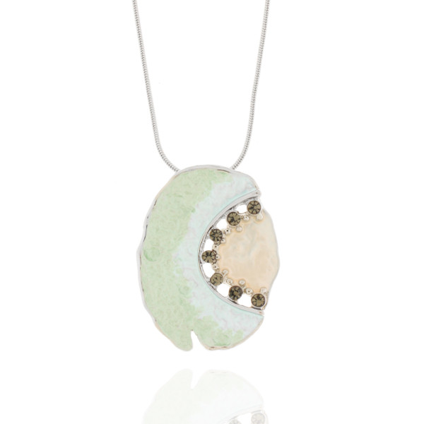 Collier, imit. Rhodium, grün/gelb, Kristallsteine oliv, 45 + 5cm, nickel-cadmium-bleifrei