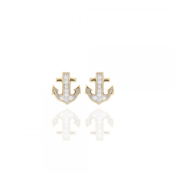 Ohrstecker, 925/- Silber, vergoldet, Zirkonia, Anker