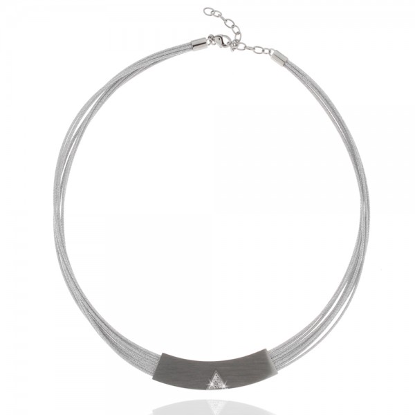 Collier, Edelstahl, Lurex silbern, Preciosa weiß, matt, 42 + 5 cm