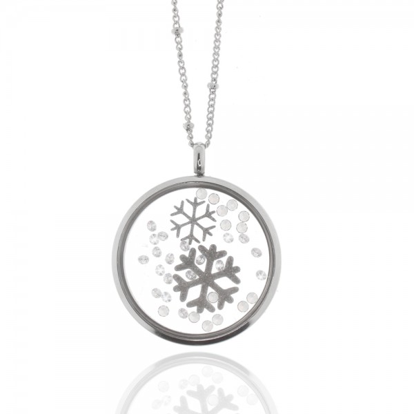 Collier, Edelstahl, Kristallsteine, Schneeflocken, silber Glitzer, Ø 30mm, 45 + 5 cm