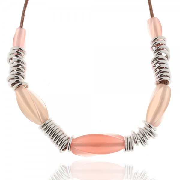 Collier imit. Rhodium, Steine orange, Stoffband 3-reihig braun, 43 cm lang + 6 cm, nickle-cadmium-bleifrei, antiallergisch