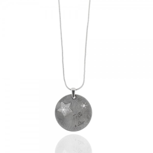 Collier, imit. Rhodium, gebürstet, Stern, Glitzer, 42 + 7 cm, nickel-cadmium-bleifrei, antiallergisch
