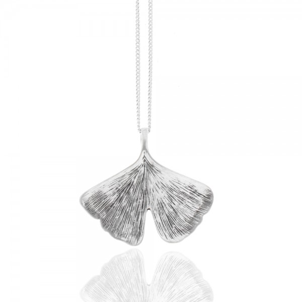 Collier versilbert/ oxidiert, Ginko, 42 + 8 cm, nickel-cadmium-bleifrei