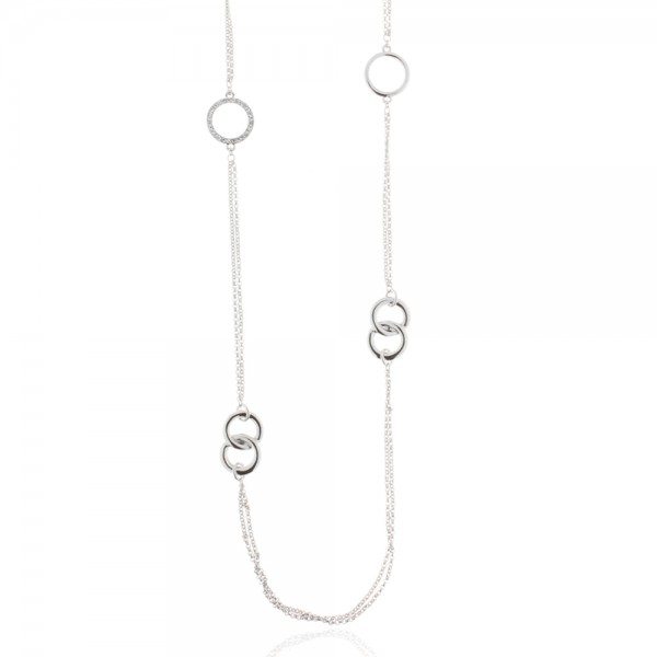 Collier, imitiertes Rhodium, Kristallsteine weiß, 97 + 3,5 cm, nickel-cadmium-bleifrei