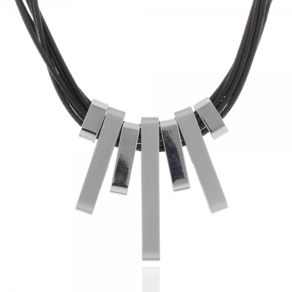 Collier, imitiertes Rhodium, Band mehrreihig schwarz, matt/glänzend, 44 cm + 6 cm, nickel-cadmium-bleifrei, antiallergisch