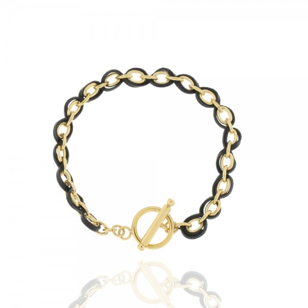 Armband Edelstahl, vergoldet, mit schwarzem Band durchzogen, Knebelverschluss, 19 cm