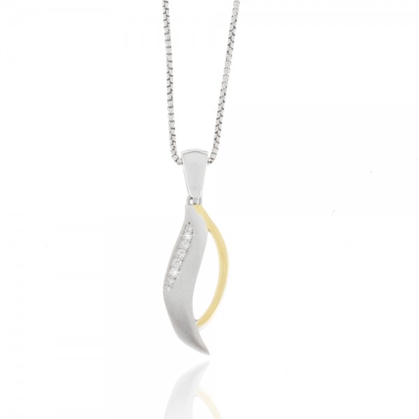 Collier, 925/- Silber, rhodiniert/vergoldet, matt/poliert, Zirkonia, inkl. Etui
