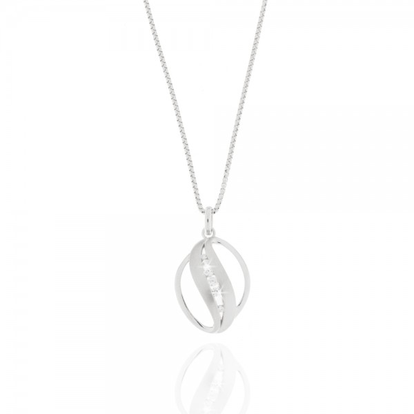 Collier 925/- Silber, rhodiniert, teilmatt, Zirkonia, 14x20mm, Länge 45 cm, inkl. Etui
