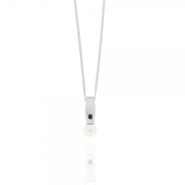 Collier 925/- Silber, rhodiniert, poliert, Glasperle 7mm, 45cm