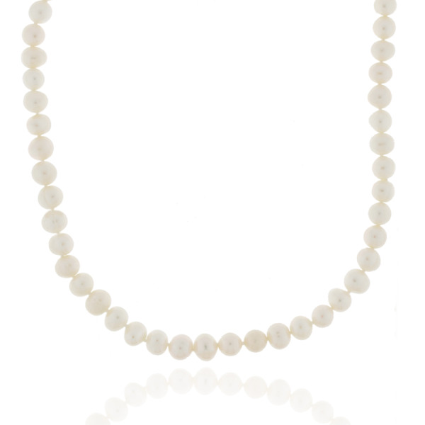 Collier, Verschluss 925/- Silber rhodiniert, Süßwasserperlen 7-8mm, geknotet, 45 + 5cm, inkl. Etui