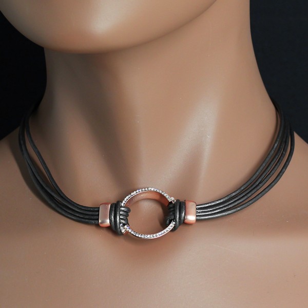 Collier mattrosegold, Band vierreihig grau, Länge 42 cm + 7 cm Verlängerung, nickel-, cadmium- und bleifrei, antiallergisch