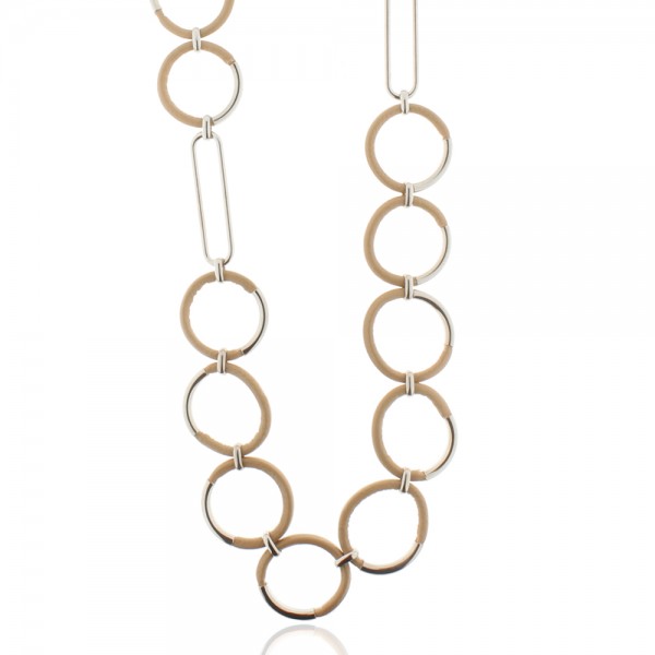Collier, imit. Rhodium, Leder camel, 102 cm, nickel-cadmium-bleifrei, antiallergisch