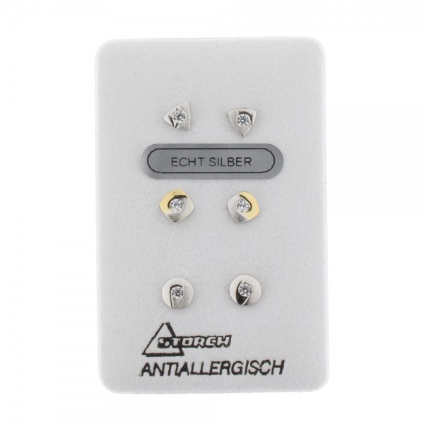 3er Set Ohrstecker, 925/- Silber, rhodiniert/vergoldet, Zirkonia
